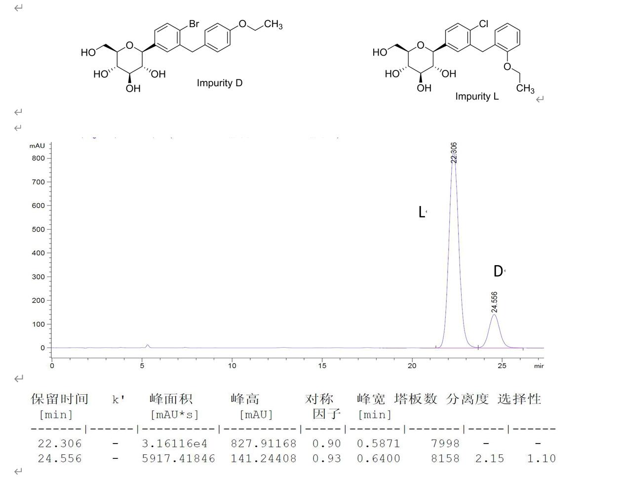菲羅門色譜柱分離達(dá)格列凈雜質(zhì)D和L