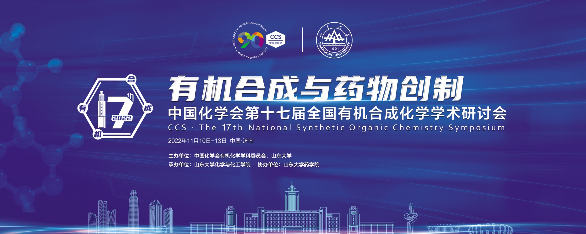 中國化學會第十七屆全國有機合成化學學術(shù)研討會定于2022年11月10至13日在山東省濟南市舉行。本次會議由中國化學會有機化學學科委員會、山東大學共同主辦,山東大學化學與化工學院承辦,山東大學藥學院協(xié)辦。