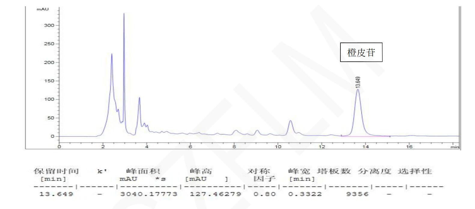 理論塔板數按橙皮苷峰計算不低于 5000