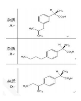 布洛芬是一種解熱鎮(zhèn)痛的非甾體抗炎藥,主要通過抑制外周神經(jīng)環(huán)氧合酶-2的合成以減少前列腺素(致痛成分)和炎癥因子的產(chǎn)生,由此減輕組織充血和降低神經(jīng)痛覺的敏感性,從而達(dá)到鎮(zhèn)痛的效果。在解熱方面,布洛芬主要通過作用于下丘腦的體溫調(diào)節(jié)中樞,降低其異常興奮型,調(diào)節(jié)神經(jīng)來擴(kuò)張皮膚血管,增加排汗量使皮膚散熱;同時穩(wěn)定白細(xì)胞內(nèi)溶酶體膜, 阻礙致熱原的釋放,達(dá)到降低體溫的效果。 布洛芬在合成制備過程中會產(chǎn)生多種雜質(zhì),典型的是間異丁基布洛芬,也被稱為布洛芬雜質(zhì)A,是一種布洛芬的位置異構(gòu)體。 布洛芬分子中含有一個手性中心,是一種手性藥物,有兩個互為鏡像的對映異構(gòu)體,S(+)-布洛芬和R(-)-布洛芬(如圖2),二者在藥理方面具有明顯區(qū)別。國家開始有要求檢測對映異構(gòu)體。 布洛芬的大多數(shù)色譜分析需求也來源于以上兩種原因。