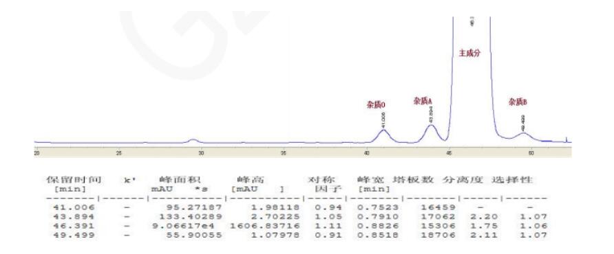綜合布洛芬及其雜質(zhì)與手性異構(gòu)體的分離分析,菲羅門總結(jié)以下四種分析方法供相關(guān)分析工作者參考。 一、布洛芬及其異構(gòu)體雜質(zhì)的分析 App ID: FLM-T220002 案例名:Titank F5 分離布洛芬及雜質(zhì) A、B、O 方法:自定 色譜柱:Titank F5 5μ 150*4.6mm(貨號:FMF-5565-EONU) 檢測:UV 214 nm 柱溫:25℃ 流動相: 水:乙腈:1%磷酸=60:30:10