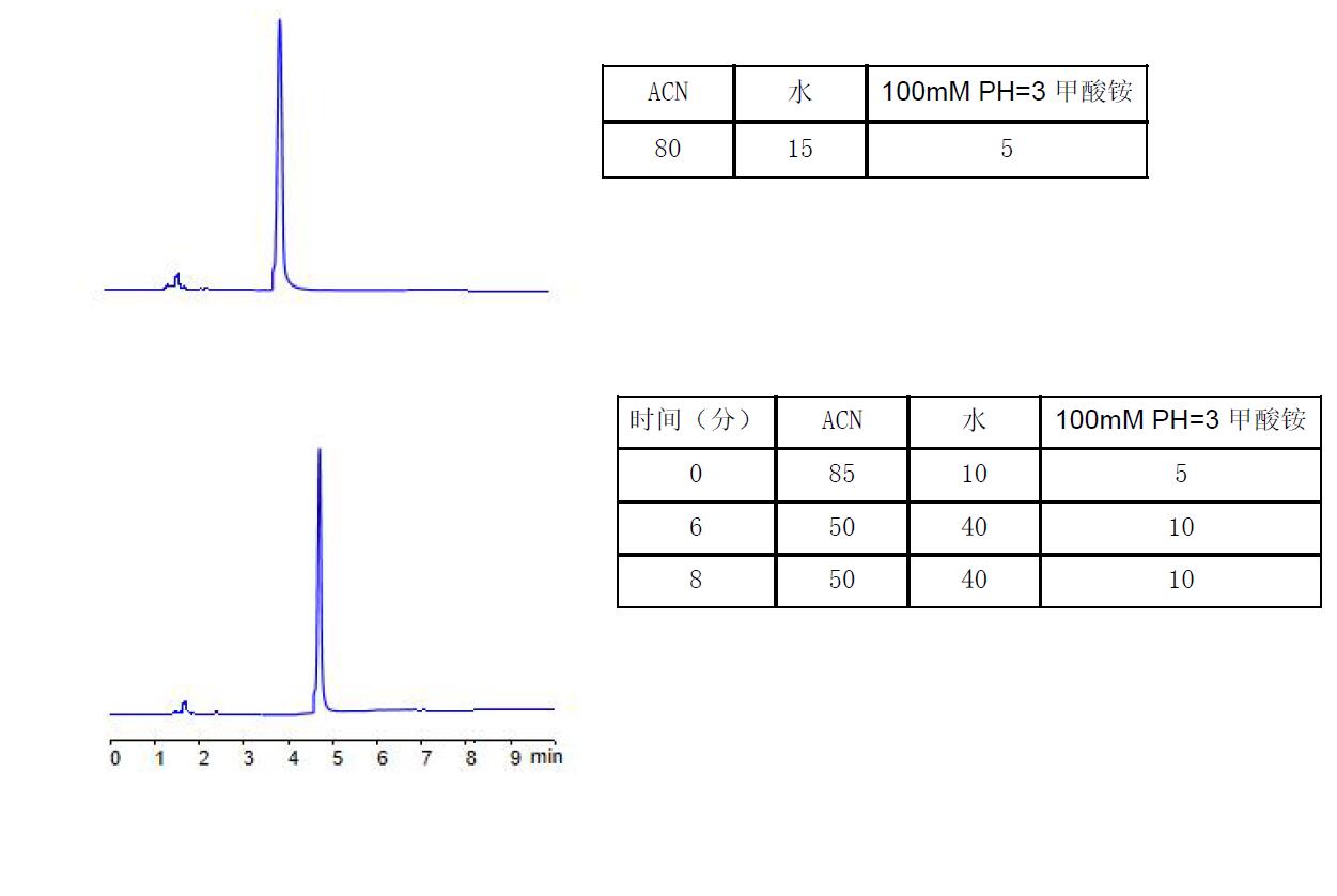 說明:以上應(yīng)用可以簡(jiǎn)單在酸性體系下分析尼古丁。如果是用于MS 檢測(cè)器??蛇x擇Comxsil HAC 3u 50*2.1mm(P/N:FMB-HAC3-BONU)柱,0.2ml/min, ACN:5mM PH=3 甲酸銨=85:15,預(yù)計(jì)2min 出峰分析完畢。 該方法可避免C18 柱酸性條件下的弱保留,拖尾;避免Hilic 柱酸性條件下的重現(xiàn)性問題,避免不喜歡用堿性條件的客戶群體。如果愿意用堿性體系的,菲羅門公司的Titank C18 柱,ACN 與碳酸氫銨的體系,也可以很好分析尼古丁,可向銷售代表索取應(yīng)用。 |
