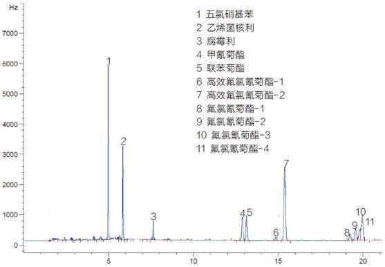 七種農殘標準品:五氯硝基苯(CAS: 82-68-8),乙烯菌核利(CAS: 50471-44-8),腐霉利(CAS: 32809-16-8),甲氰菊酯(CAS: 64257-84-7),聯苯菊酯(CAS: 83322-02-5),高效氟氯氰菊酯(CAS: 91465-08-6),氟氯氰菊酯(CAS: 68359-37-5)